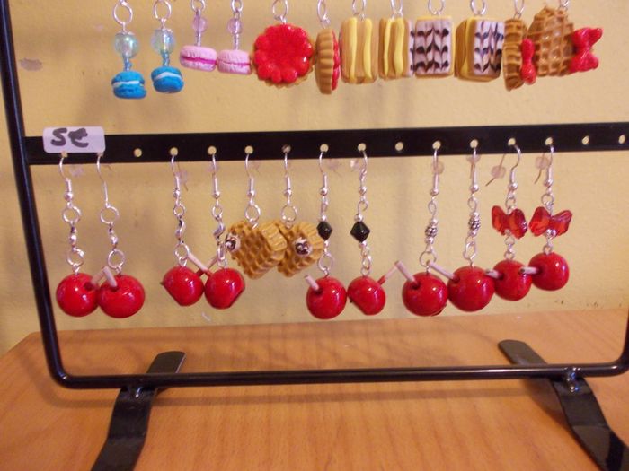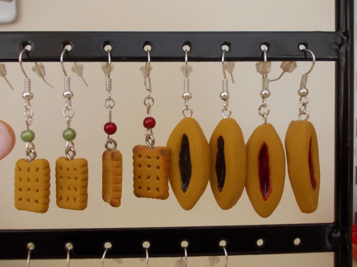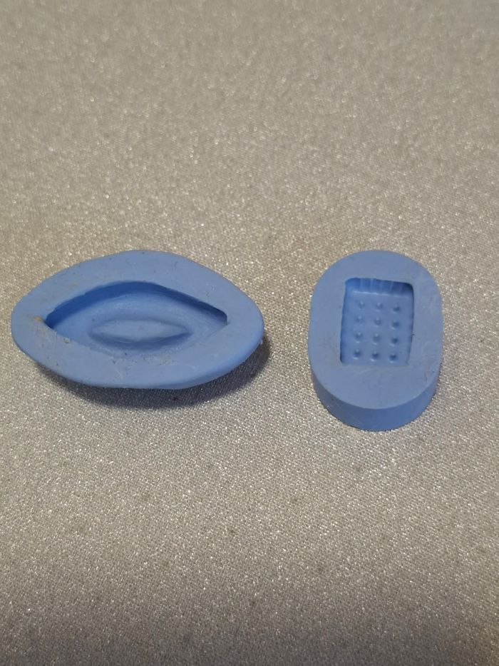 Joli lot de 7 moules en silicone pour créations gourmandes de gaufre (4 x 3 cm), petits beurres (3,5 x 2,3 et 1,6 x 1,1 cm), gâteau barquette (3 x 1,4 cm), fond de tarte (diamètre 2 cm), gaufre en forme de coeur (2,3 x 2 cm) et galette (diamètre 2 cm), en pâte fimo, pâte à sel, argile, pâte à sucre, pâte d'amande, etc ... Idéal pour faire des boucles d'oreilles, colliers, porte-clés ou pour maison de poupées. Utilisé quelquefois pour quelques formes et certains encore neufs. Nombreux détails réalistes.
