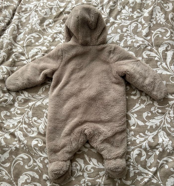 Combinaison pilote Sergent Major « mon premier major » taille 6 mois fourrure beige gris à capuche et mains gants État comme neuf Mixte