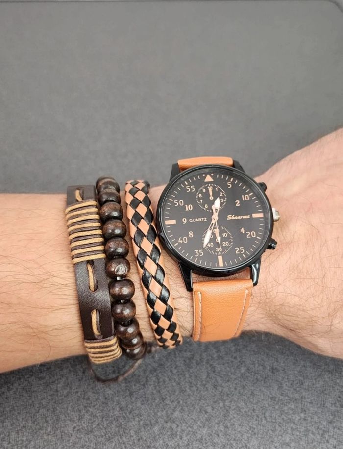 ⌚ Montre homme élégante avec bracelet cuir marron clair Neuf, jamais utilisée ✅ Style moderne et décontracté, parfait pour toutes les occasions 💼 Cadran noir avec détails raffinés, bracelet confortable et ajustable 🔥 #montre #homme #mode #accessoire #style #élégant #cuir #neuf #tendance #cadeau #look #bracelet #fashion