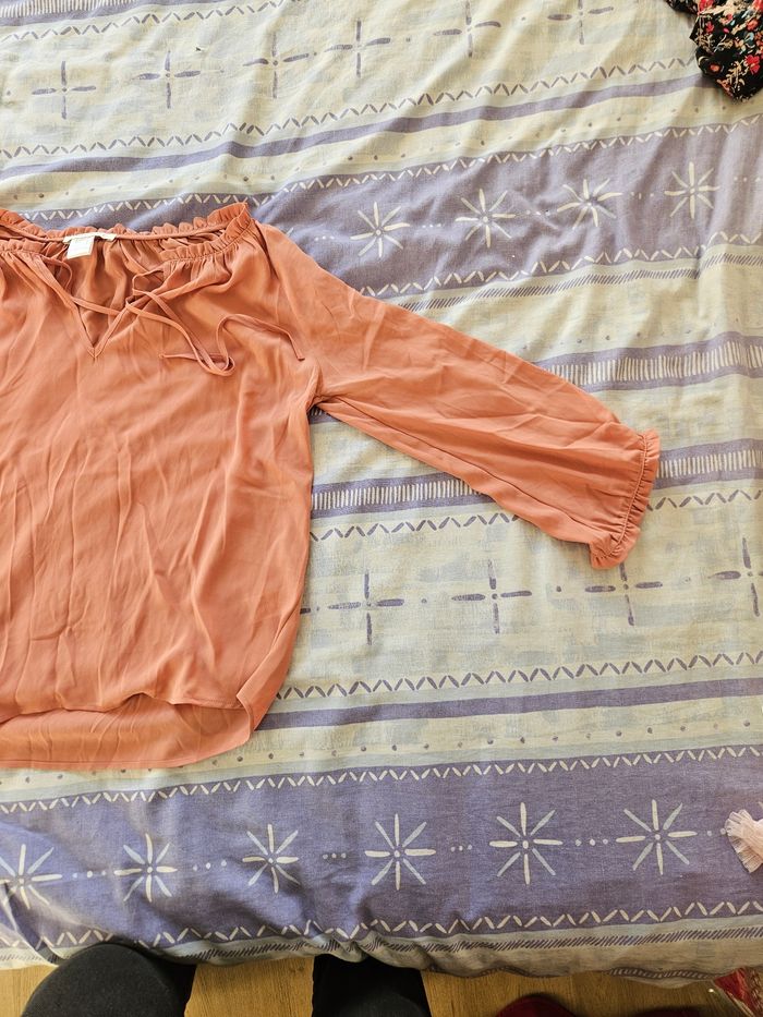Blouse rose le redoute. Fronce aux poignets et au cou, cou fermage cordon