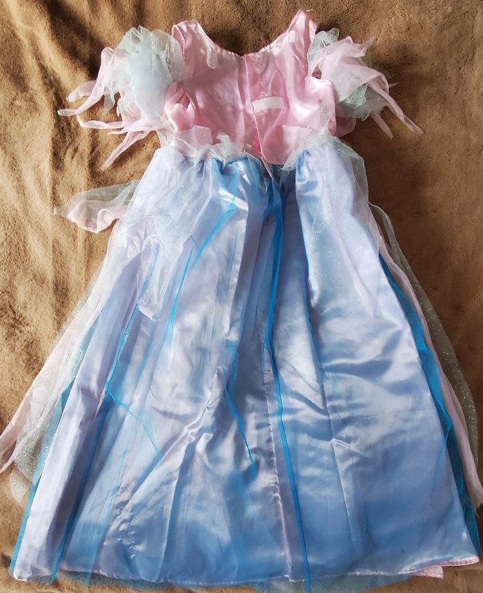 Je vends ce déguisement de Barbie Lac des cygnes. La panoplie est constituée d'une robe, d'une paire d'ailes et d'une couronne. L'ensemble est en très bon état, seule la robe a été raccommodée à deux reprises (cf photos).