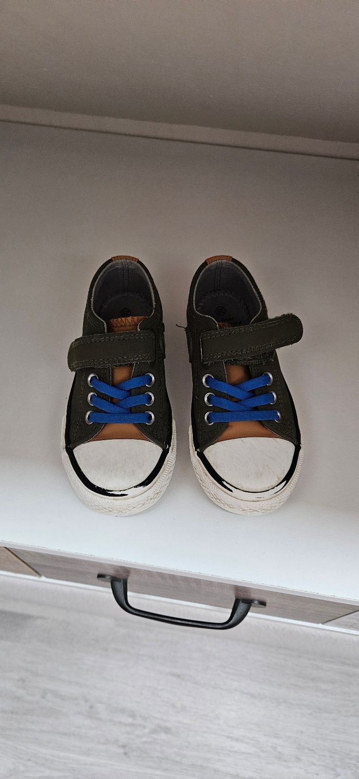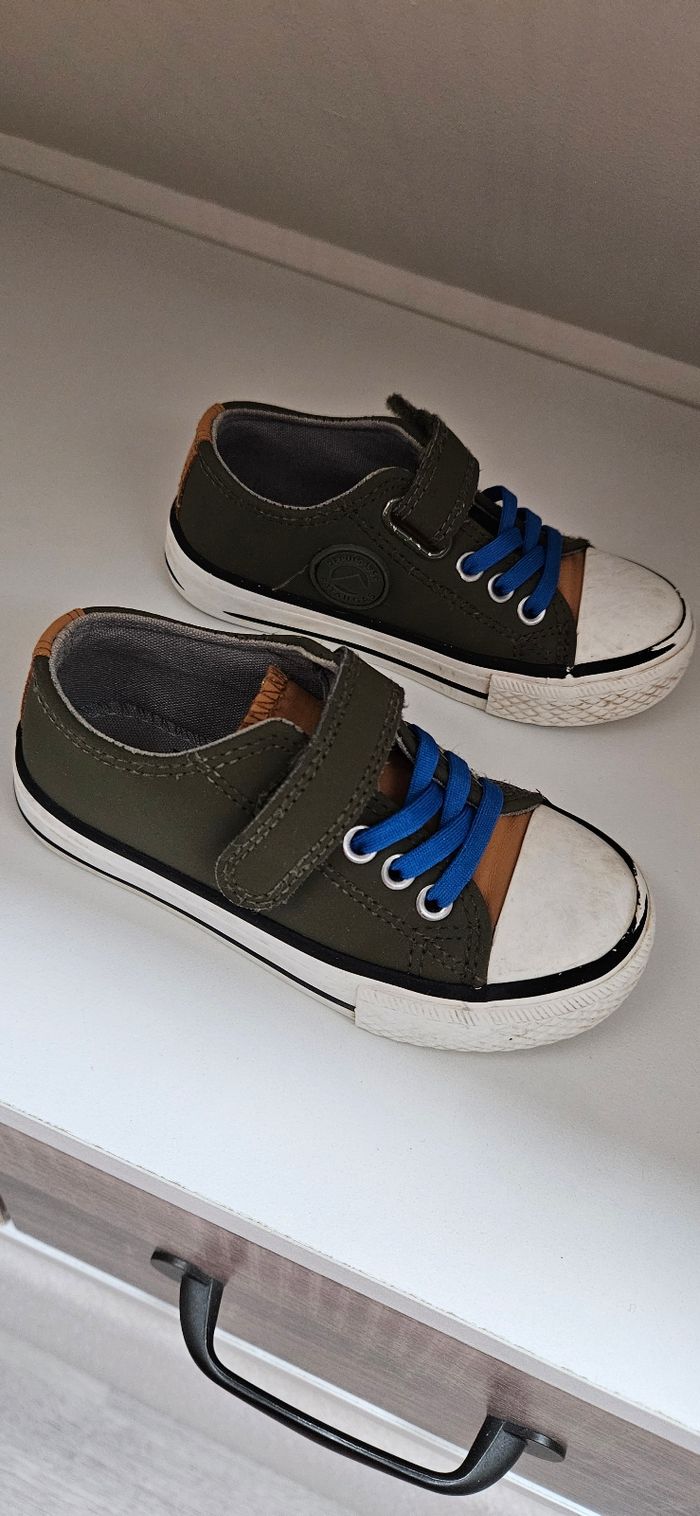 Chaussure type converse, à scratch Couleur kaki, taille 25