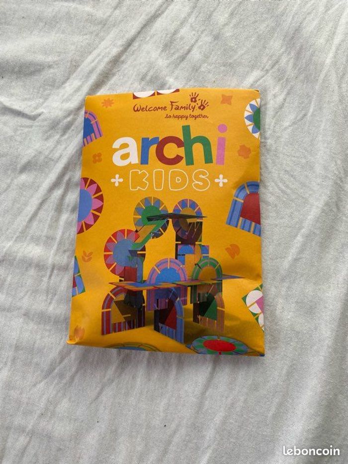 Je vends ce kit de jeu Archi Kids, un produit idéal pour stimuler la créativité des enfants. - Type de produit : Kit de jeu créatif - Marque : Archi Kids - Contenu du lot : Pièces en bois colorées pour construire des structures originales État neuf, jamais utilisé