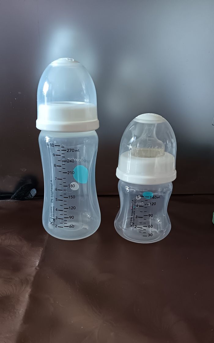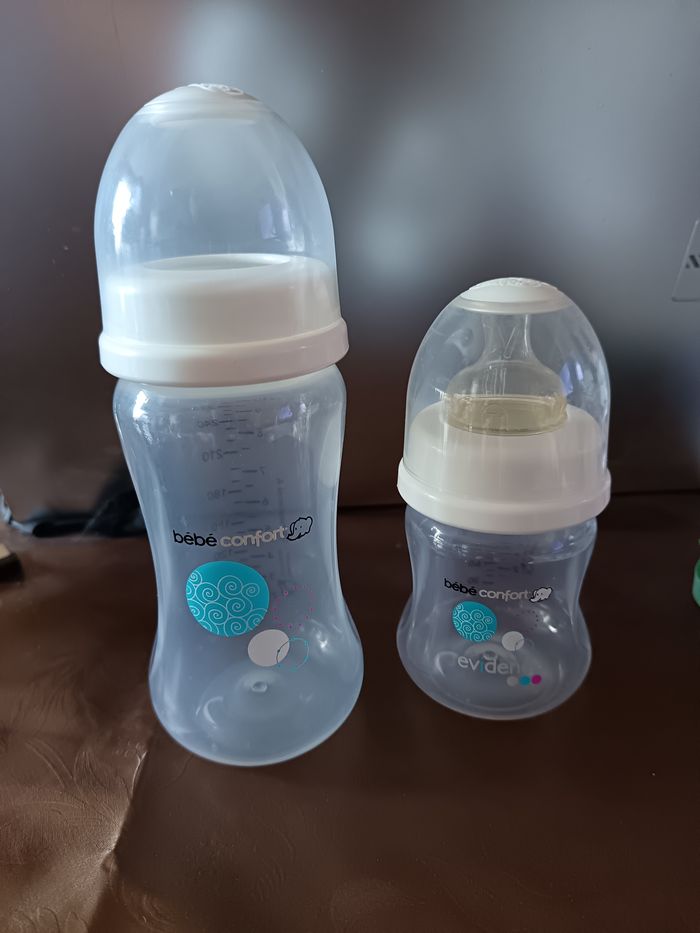 Lot de 2 biberons Marque BEBE CONFORT - 1 biberon 140ml avec tétine EVIDENCE T1 à 3 vitesses - 1 biberon 270ml sans tétine car utilisée sur autre biberon Neuf jamais utilisés Attention ! La couleur réelle peut être un peu différente en raison de la luminosité lors de la prise de photo.