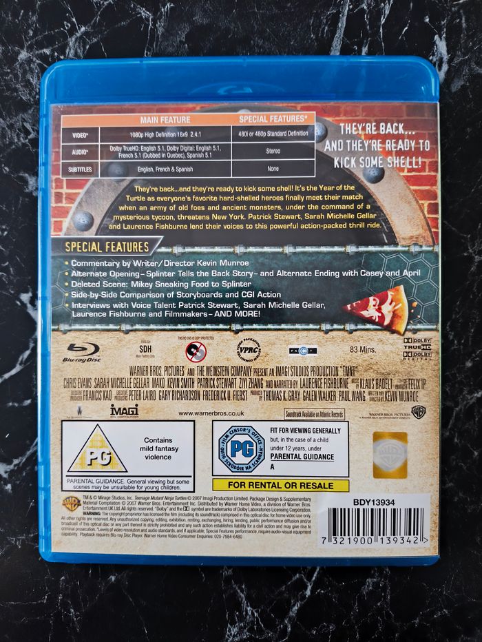 Film TMNT : Les Tortues Ninja (2007) en très bon état. Animation et Action de Kevin Munroe avec les voix de Chris Evans, Sarah Michelle Gellar, Patrick Stewart, Mako et Kevin Smith. ⚠️ Blu-ray importé (jaquette en anglais) avec piste audio en français québécois. Plusieurs autres films (DVD et blu-ray) et séries télé disponibles sur mon dressing. Si vous avez des questions ou souhaitez plus de photos, n'hésitez pas à me demander. Prix négociable seulement si vous achetez plusieurs articles. N'hésitez pas à créer un lot et à faire une proposition raisonnable et à me demander un prix. Tag de recherche : #neboo_video #neboo_bluray #neboo_film blu ray bluray langue français française French FR