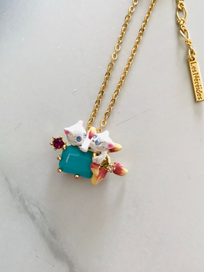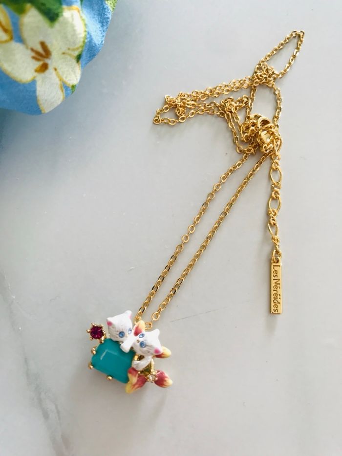 Collier chats sur pierre turquoise  - photo numéro 2