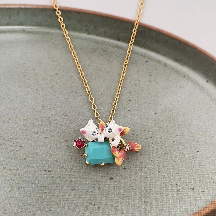 Collier chats sur pierre turquoise