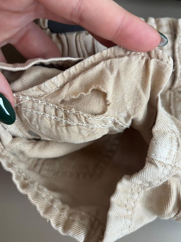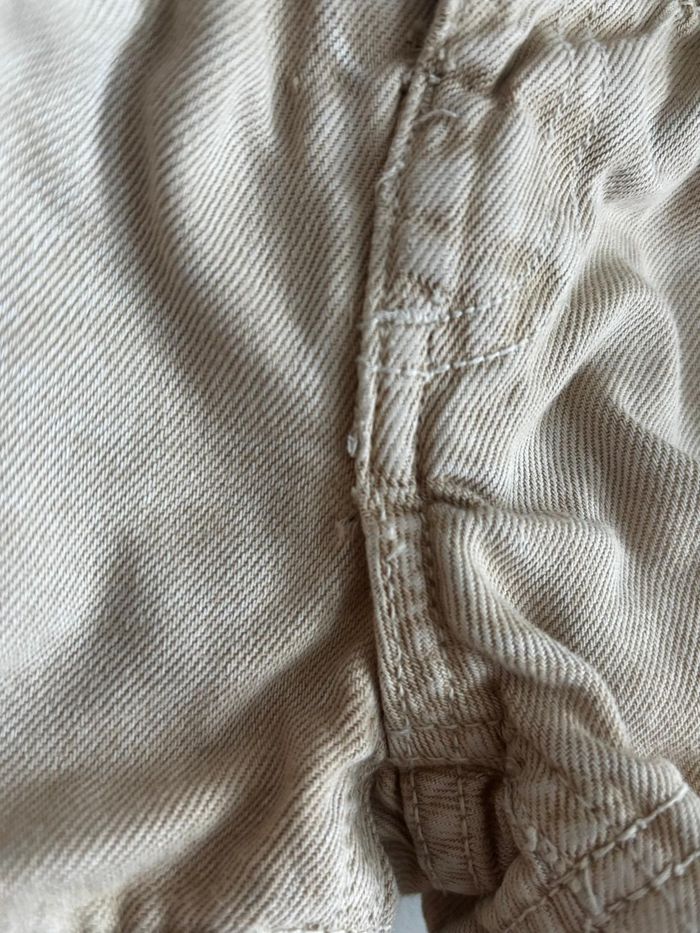 Short en jean Très peu porté mais usure au niveau de la couture en dessous de la fermeture ainsi qu'un trou au niveau d'une des poches