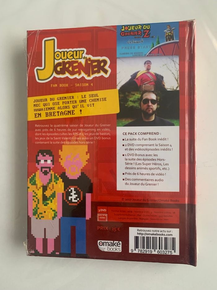 Je vends le Fan Book de la Saison 4 de Joueur du Grenier, un incontournable pour tous les fans de la série culte française. - Titre : Joueur du Grenier : Fan Book - Saison 4 - Éditeur : Omake Books - Format : Relié - Langue : Français - Contenu : 3 DVD avec la Saison 4 et des bonus (DVD bonus avec les Super Héros, dessins animés, etc.), 6 heures de vidéo, commentaires audio État neuf N'hésitez pas à me contacter pour plus d'informations ou pour discuter du prix.