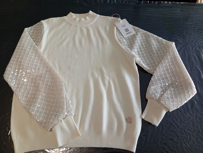Pull doux femme Avec étiquette jamais utilise Couleur Blanc Avec des paillettes dans les bras