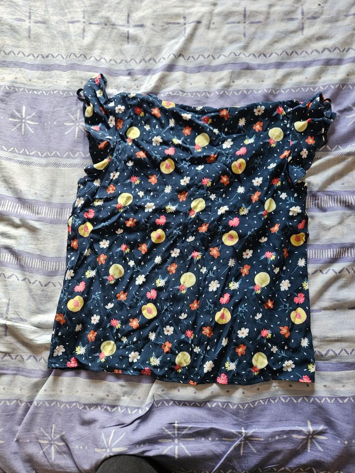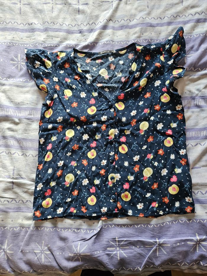Blouse bleu, 6 boutons sur le devant, manches frou frou marque follow me