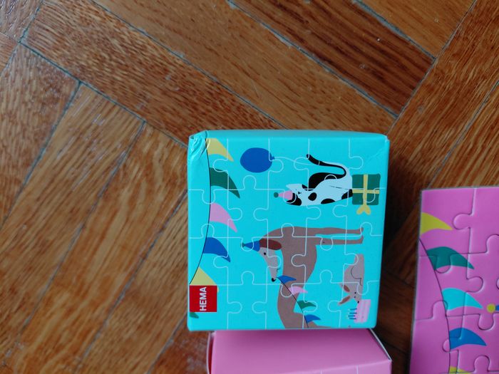 4 mini puzzle pour fête d'anniversaire, pour garnir piniata, ou pochette cadeau aux invités 3 neufs jamais ouverts dont le bleu avec un coin abimé + 4e boite abimée