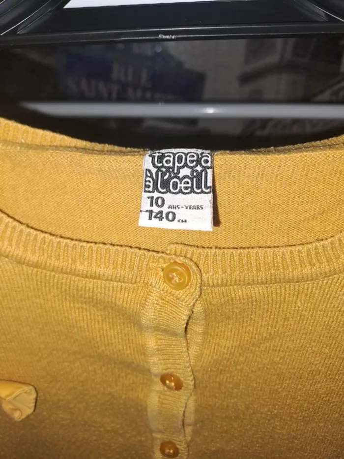 Je vends ce gilet jaune moutarde de la marque Tape à l'œil, parfait pour habiller votre fille avec style et confort au quotidien. - Type de produit : Gilet - Marque : Tape à l'œil - Univers : Enfant fille - Taille : 10 ans / 140 cm - Couleur : Jaune / Moutarde - Caractéristiques : Manches longues, Fermeture par boutons N'hésitez pas à me contacter pour plus d'informations ou de photos.