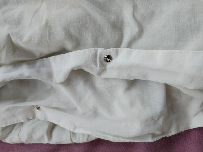 Couette légère, pour l'été, 140 x 190 cm ​Confort : Enveloppe douce 100 % coton et garnissage bien réparti avec piquage à carreaux pour éviter que la matière ne bouge. ​✨ Détails techniques : ​Couleur : Blanc pur. ​Dimensions : 140 x 190 cm ​Entretien : Lavable en machine séchage rapide. ​État : Très bon état, propre et soignée. Maison sans animaux et non-fumeur.