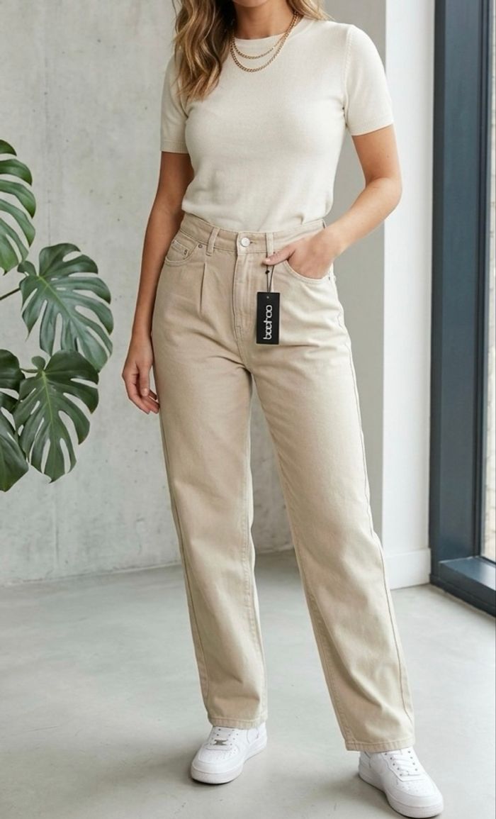 Je vends ce pantalon Boohoo, neuf avec étiquette. Coupe droite légèrement ajustée, facile à porter au quotidien. Couleur beige / écru très tendance, idéale pour la mi-saison et l’été, facile à assortir avec tout type de hauts. État : neuf avec étiquette Marque : Boohoo Type : pantalon / jean droit Couleur : beige / écru Taille : EUR 36 (UK 8 – US 4) Détails : poches avant et arrière, fermeture bouton + zip