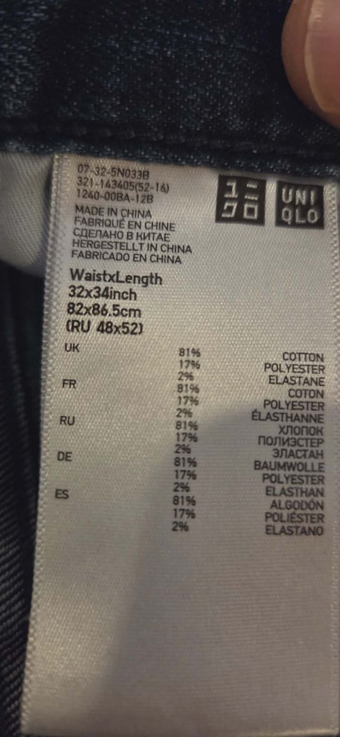 JEAN UNIQLO 32x34 – Coupe Droite Stretch – Bleu Indigo – Excellent État - photo numéro 10