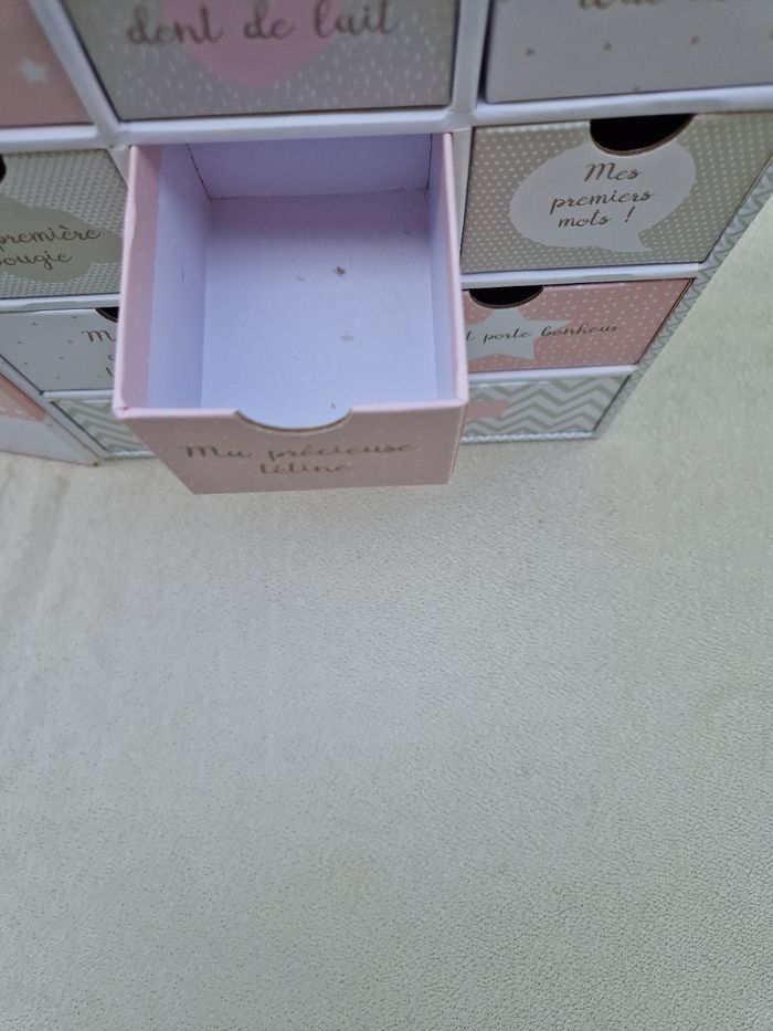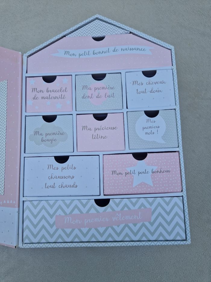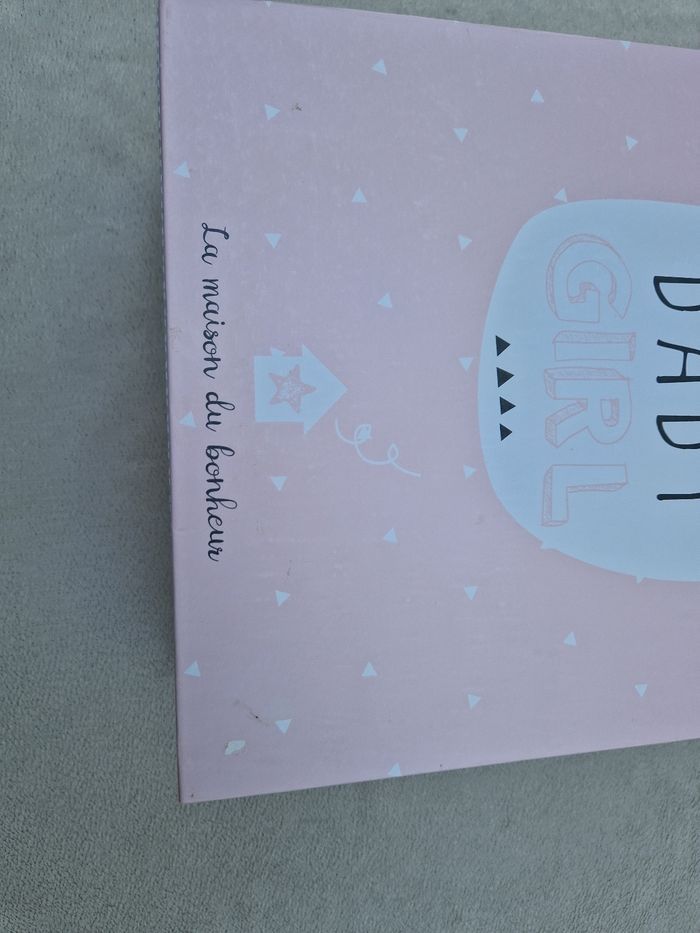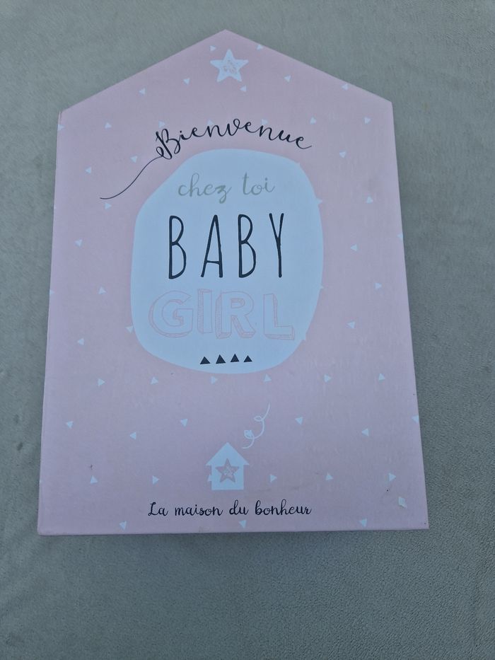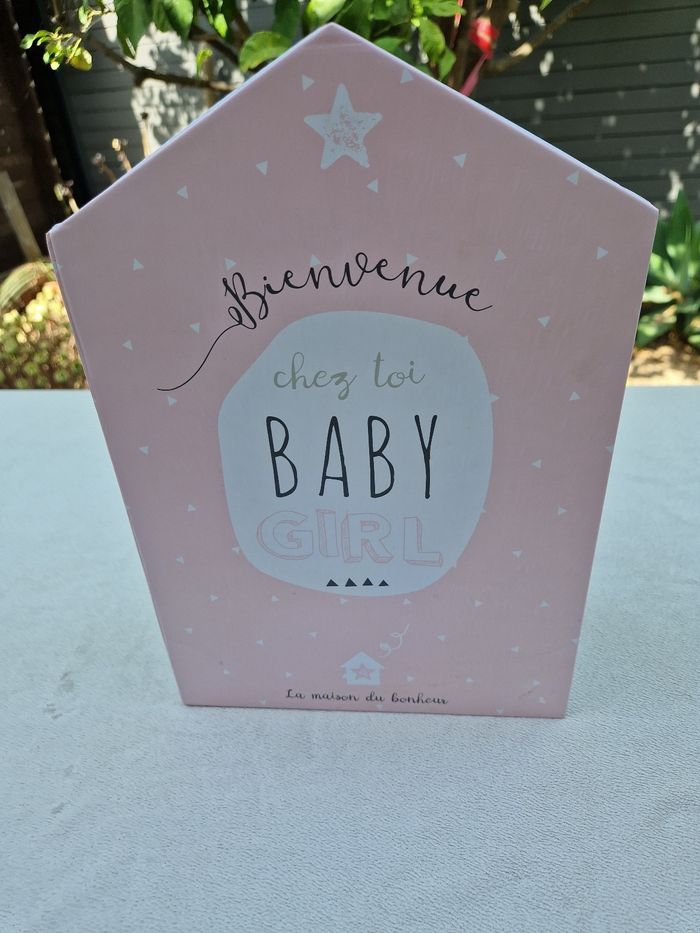 Vends le coffret de naissance la maison du bonheur bienvenue chez toi baby girl en très bon état, il y a quelques légères taches ( la tâche en haut de la couverture intérieure était déjà la quand on nous l'a offert) et deux petits coups