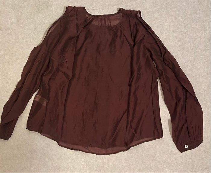 Blouse bordeaux fluide manche longue et épaule dénudée sur le côté chic et élégant - photo numéro 2