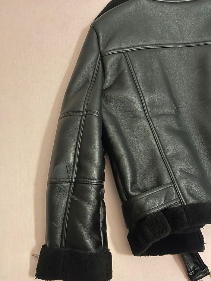 Veste type perfecto / aviateur/biket – effet cuir noir – doublure chaude - photo numéro 4