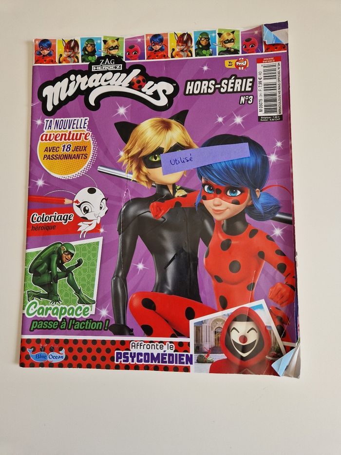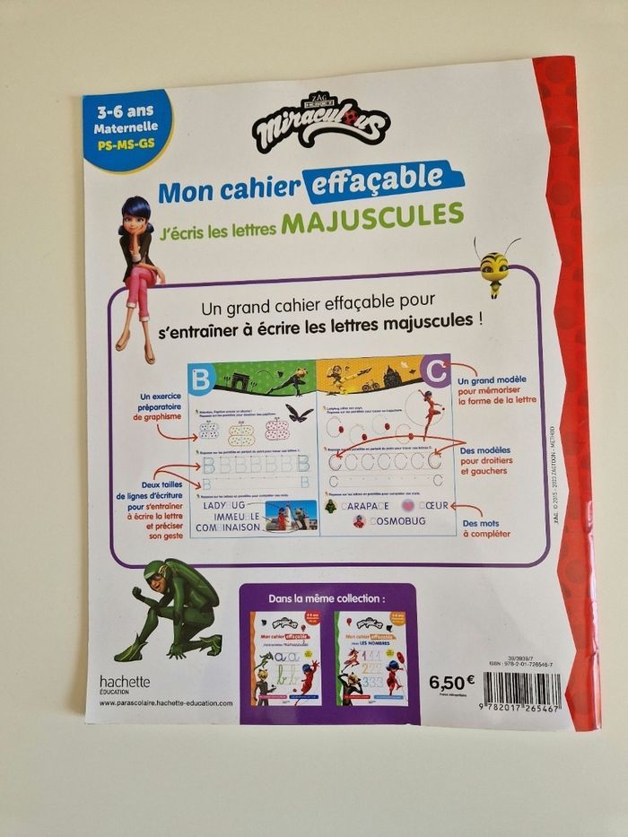 Vends un lot de 5 cahiers de Miraculous ladybug et chat noir . Le cahier moyenne section est neuf Le cahier effaçable légère traces sur la page A sinon très bon état Et les 3 magazines il y en a un neuf et les autres utilisé. Je vends d'autres affaires Miraculous n'hésitez pas à me demander si besoin réductions activées sur lot