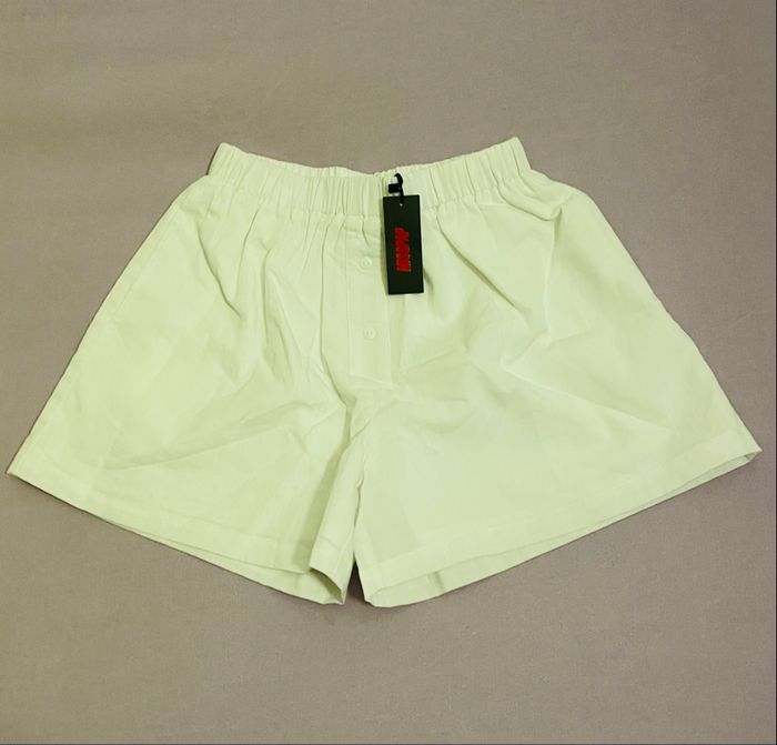 Je vends un short MISSPAP de couleur blanc au style moderne et minimaliste. Taille élastique pour un confort optimal, coupe fluide et légère. Taille : 38 État : Neuf avec étiquette Détails : Taille élastique, boutons à l’avant, matière légère et agréable Parfait pour la saison printemps/été, facile à porter au quotidien ou en tenue streetwear.