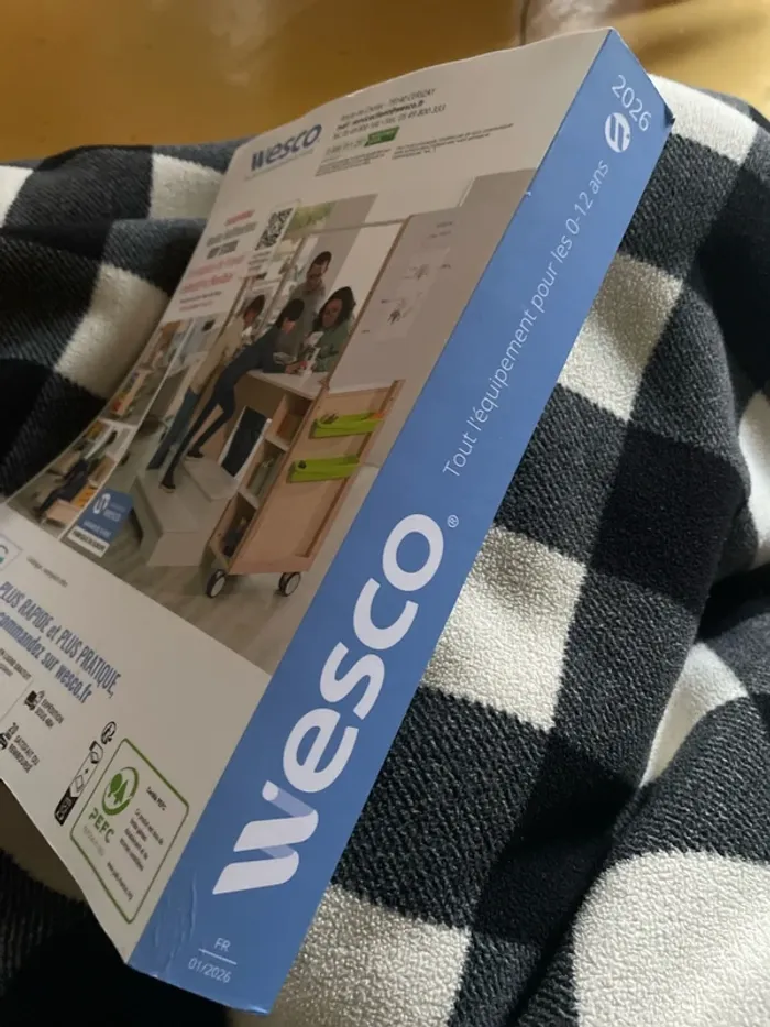 Catalogue 2026 Wesco - Tout pour l’équipement des enfants de 0 à 12 ans Très complet : Aménagement et mobilier - Jeux d’éveil et éducatifs - Matériel d’apprentissage - Papeterie et activités créatives - Sport et motricité. Livre de 1240 pages en très bon état. Catalogue neuf Envoi rapide et soigné.