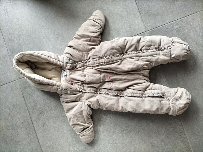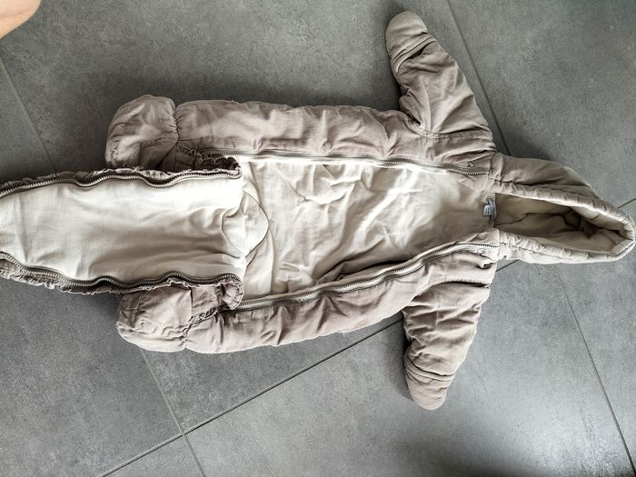 Combipilote taille 3 mois Ouverture sur le devant grâce aux deux fermetures éclairs. Retour de tissu sur les mains pour qu'elles soient bien couvertes. Coloris marron/beige #melanie43700 #vetementbebe3mois #combipilote3mois