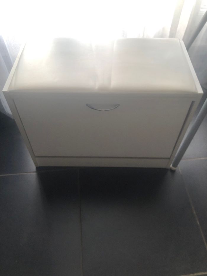 Banc range chaussures reste un bon état général voir photo en description à 2 endroit la peinture et abîmé mais c’est cacher avec le coussin du banc sinon reste solide et on peu s’asseoir dessus acheter 100€ je vend à un petit prix de 30€