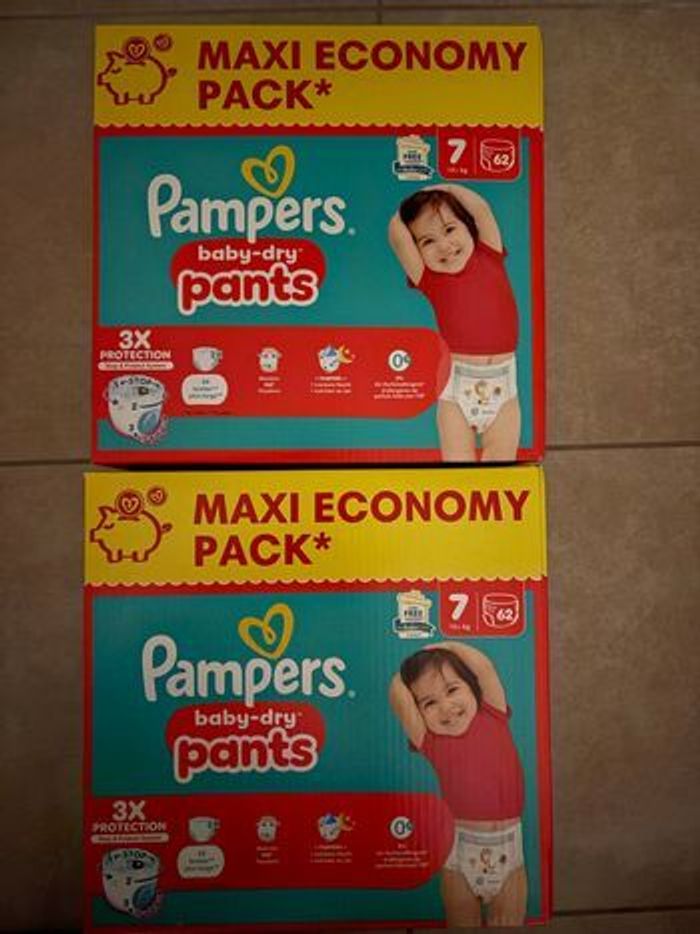 Vends 2 cartons de couches Pampers Baby Dry Pants Taille 7 (124 couches au total) Neuf. Jamais déballé
