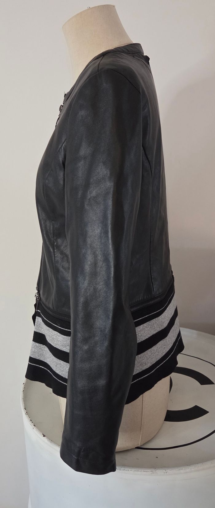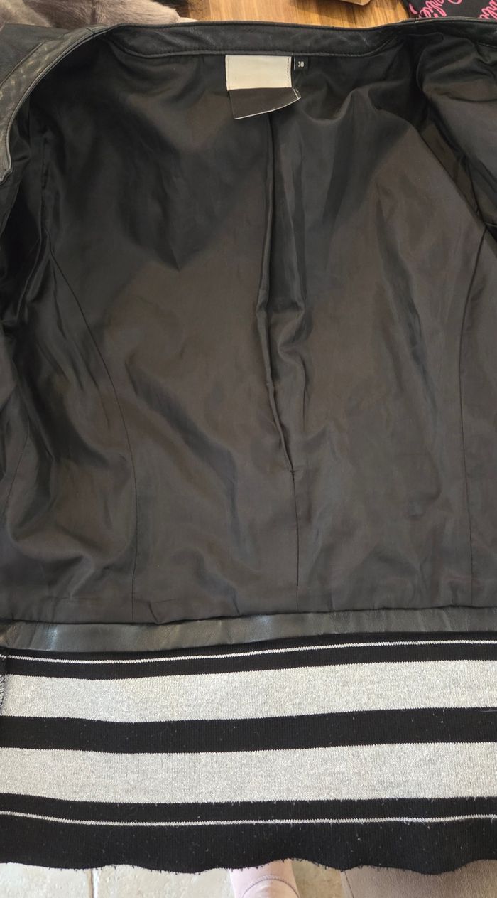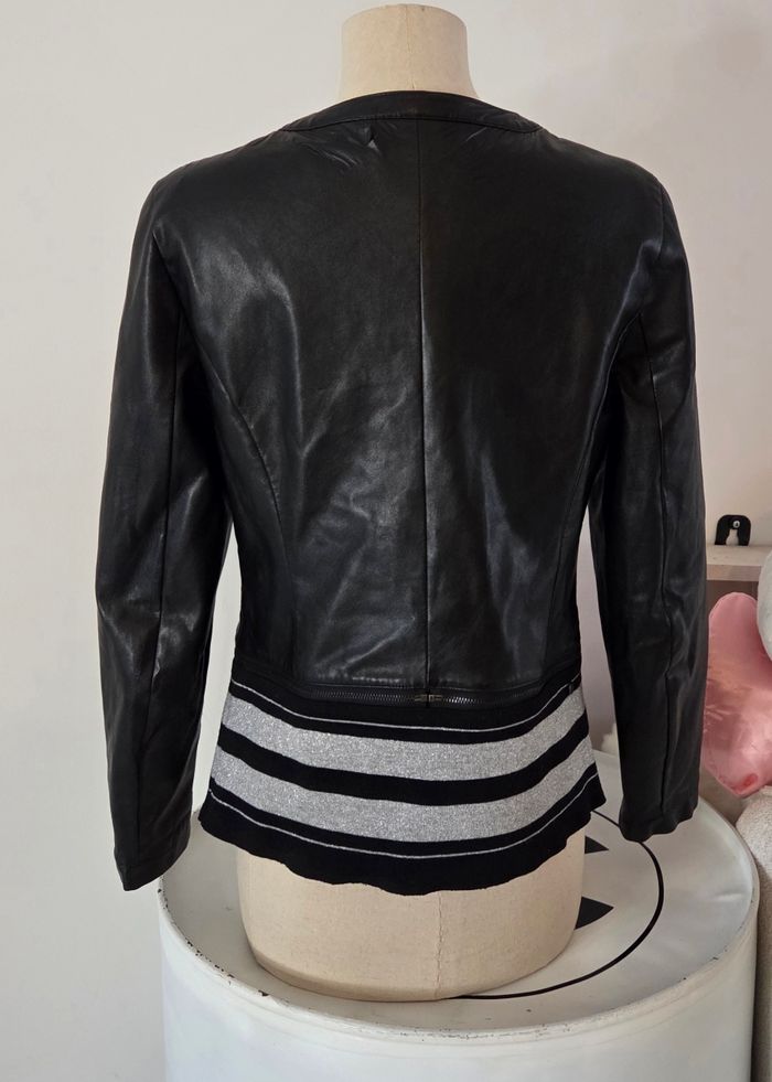 VESTE SIMILI CUIR TREND T38 – STYLE BIKER CHIC – DÉTAIL RAYURES – Très bon état  - photo numéro 3