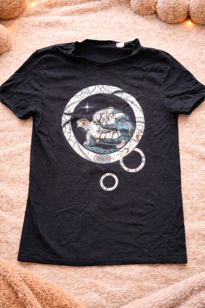 T-shirt noir femme – taille XS T-shirt noir à motif graphique, original et stylé. Organics coton Coupe confortable, agréable à porter au quotidien. En très bon état. Idéal avec un jean ou une tenue décontractée ✨