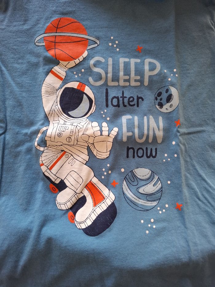 Pyjama garçon Tissaia – 8 ans – NEUF Pyjama 2 pièces Tissaia, taille 8 ans. Jamais porté, neuf. Matière douce et confortable, parfait pour des nuits cocooning 🌙 Motif astronaute très sympa, idéal pour les enfants 🚀 📦 Envoi rapide 📸 Photos fidèles à l’article
