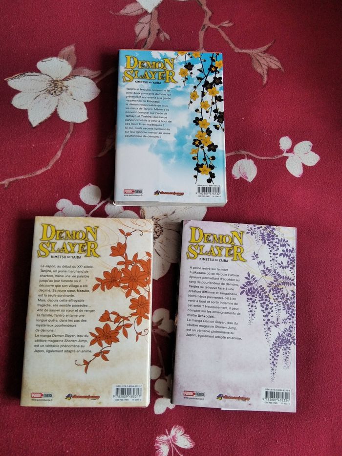 Lot de trois mangas Demon Slayer numéro 1-2-3. Très bon état 🙂