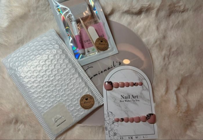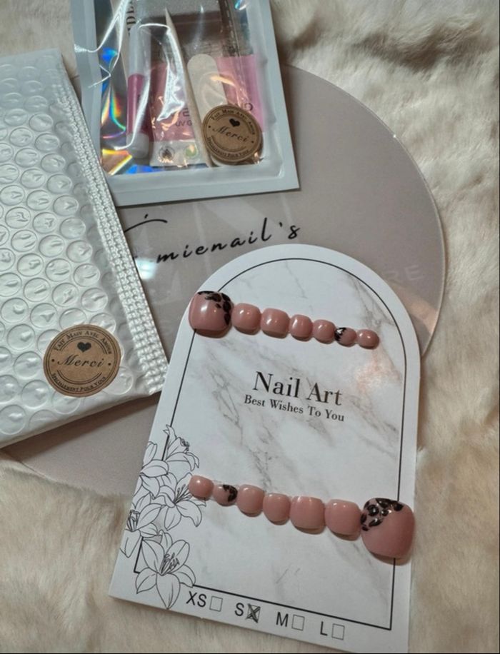 🌸 Bonjour 🌸 Siret : 10064774200012 Disponible en tailles XS, S, M, L. Merci de m’indiquer votre taille 💖 Bien lire toute la description : ✨ Fournis avec : • une lime • un pousse-cuticules • une lingette nettoyante • une fiche explicative • une colle en stick • une feuille de gels pads (colle) • une carte de fidélité avec des stickers à coller à chaque boîte achetée 💝 Une fois la carte pleine, une boîte offerte au choix ! Si vous avez déjà la carte de fidélité, n’hésitez pas à me le dire : j’enverrai uniquement le sticker à coller sur la vôtre ❤️ 📦 Une fois votre carte pleine, faites-le-moi savoir et choisissez : je m’occupe de l’envoi de la boîte offerte 😍 💡 Aide : ❓ Quelle taille dois-je prendre ? Pour trouver votre taille de Press On Nails, vous devez mesurer la largeur de vos ongles. Un test de mesure très simple (que je vous envoie au moment de votre demande) est réalisable chez vous, à l’aide de seulement trois éléments : 🩹 scotch 🖊️ feutre 📏 règle 💅 Nous avons toutes des ongles différents : plats, larges, bombés, courts, rongés… ➡️ La longueur de vos ongles importe peu. 🌷 Mes conseils : La taille standard est la taille S : elle s’adapte à la plupart des personnes. La taille XS convient aux ongles très fins en largeur. Les tailles M et L sont conseillées pour des largeurs d’ongles plus importantes. ✨ Si vous avez les ongles plats, je vous conseille de choisir une taille au-dessus. ✨ Si vous hésitez entre deux tailles, je vous conseille de prendre la taille en dessous pour un résultat qui durera plus longtemps. 📸 Si vous hésitez toujours, vous pouvez m’envoyer une photo de vos mains, ongles bien visibles, avec une pièce de 20 centimes à côté. Je pourrai ainsi regarder la taille réelle 💕 💖 À bientôt, prenez soin de vous, Émienail’s 💅✨ #PressOnNails #NailArtAddict #NailDesigns #NailInspo #NailAddict #NailArtist