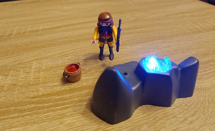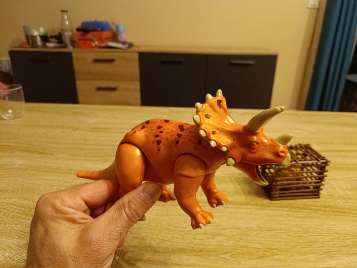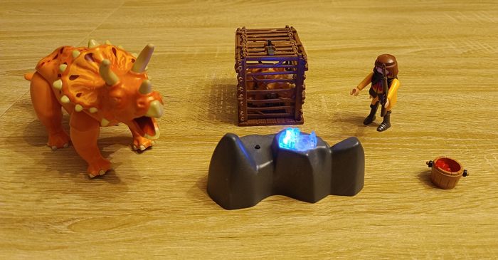 ​Lot Playmobil Dinos - Tricératops, Figurine et Rocher Lumineux ​Description : ​Vends superbe lot Playmobil issu de l'univers des Dinosaures. Parfait pour compléter une collection ou pour offrir ! ​Ce lot comprend : - 1 Grand Tricératops orange (très bon état). ​- Rocher interactif avec effet lumineux bleu qui fonctionne parfaitement (voir photos). - ​1 Cage de transport avec un bébé dinosaure à l'intérieur. ​1 Figurine de braconnier / explorateur avec son équipement. ​1 Petit seau rempli de cristaux d'énergie ​État : Très bon état général, propre et prêt à jouer. Note : Le rocher s'allume bien (piles non incluses). ​Envoi rapide et soigné via Mondial Relay, Relais Colis ou Shop2Shop. N'hésitez pas à regarder mes autres ventes pour grouper vos achats et réduire les frais de port ! ( 20 % pour 5 achats ) ​