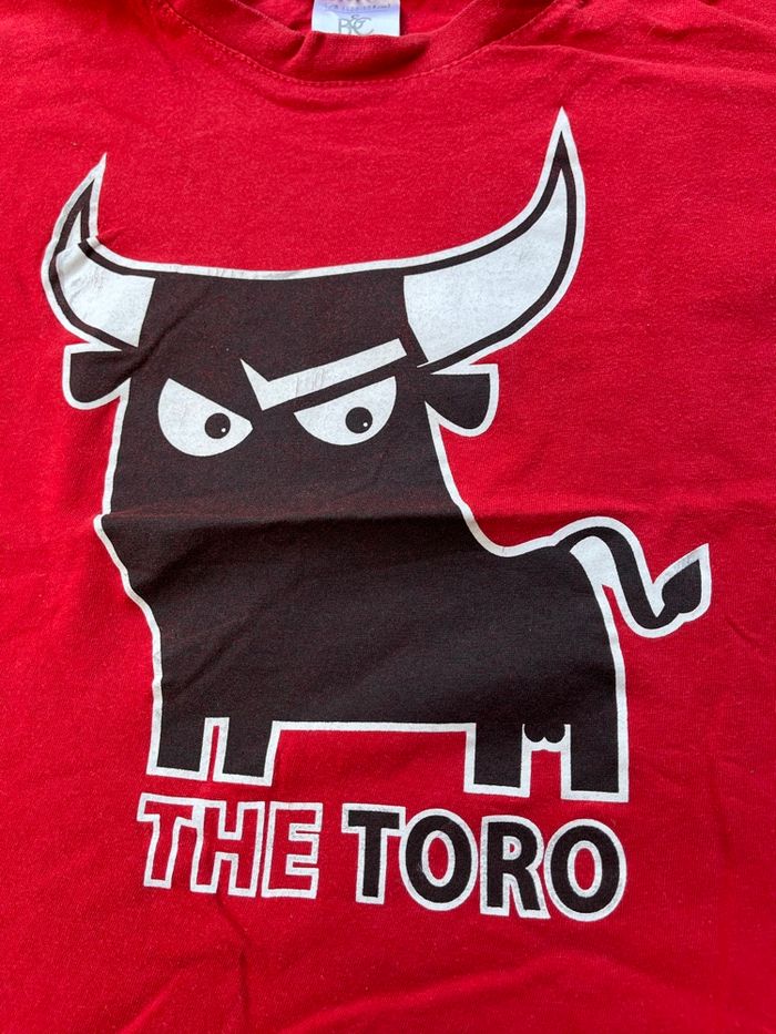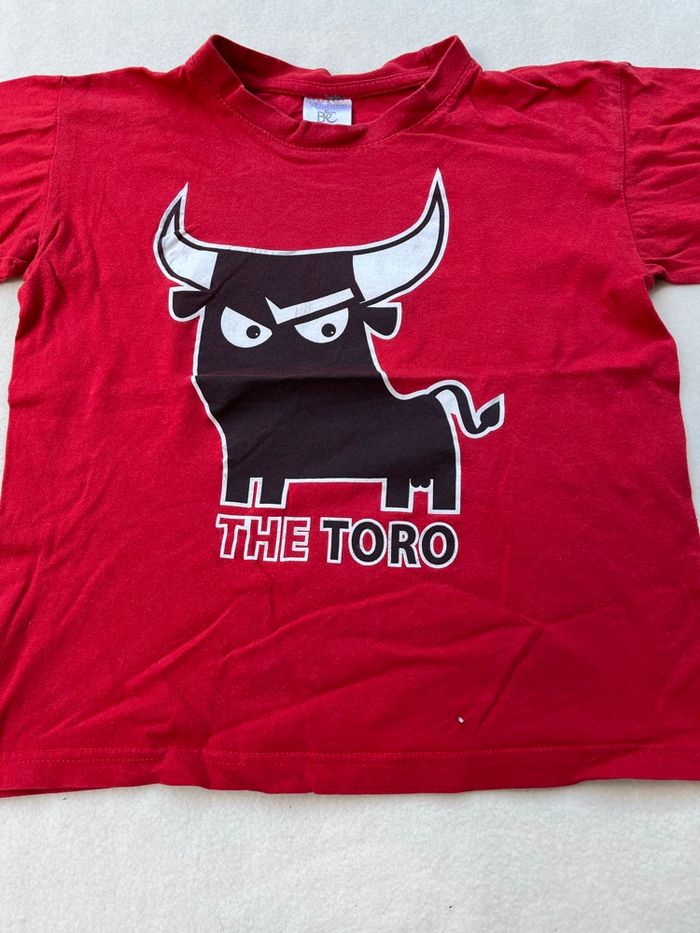 Vends ce Tee-shirt Haut de couleur rouge Taille 7 à 8 ans Motif the toro Taureau largeur aux épaules 36 cm longueur 43 cm 1,5 euros Mes autres annonces de vêtements pour garçon de 6 à 8 ans #lma42garcon8 #lma42garcon7 #lma42garcon6