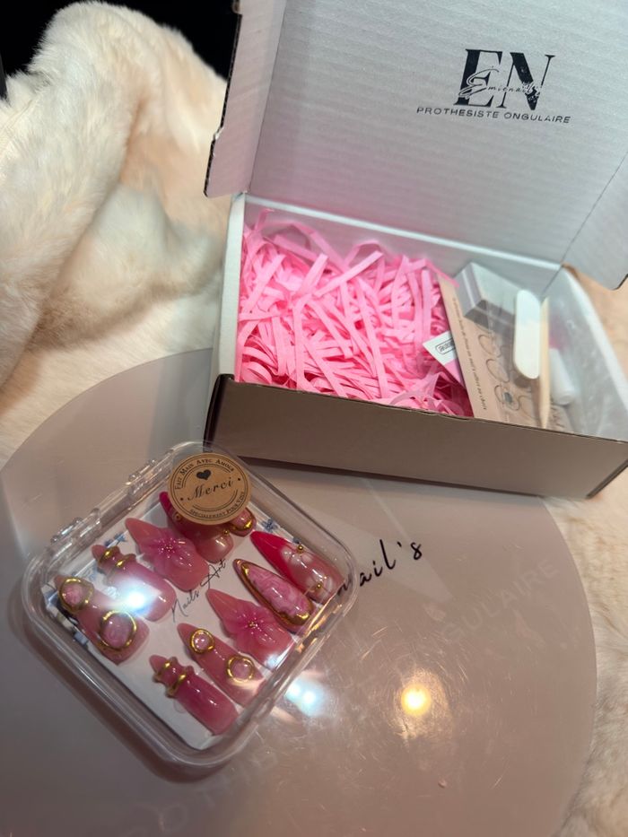 🌸 Bonjour 🌸 Siret : 10064774200012 Disponible en tailles XS, S, M, L. Merci de m’indiquer votre taille 💖 Bien lire toute la description : ✨ Fournis avec : • une lime • un pousse-cuticules • une lingette nettoyante • une fiche explicative • une colle en stick • une feuille de gels pads (colle) • une carte de fidélité avec des stickers à coller à chaque boîte achetée 💝 Une fois la carte pleine, une boîte offerte au choix ! Si vous avez déjà la carte de fidélité, n’hésitez pas à me le dire : j’enverrai uniquement le sticker à coller sur la vôtre ❤️ 📦 Une fois votre carte pleine, faites-le-moi savoir et choisissez : je m’occupe de l’envoi de la boîte offerte 😍 💡 Aide : ❓ Quelle taille dois-je prendre ? Pour trouver votre taille de Press On Nails, vous devez mesurer la largeur de vos ongles. Un test de mesure très simple (que je vous envoie au moment de votre demande) est réalisable chez vous, à l’aide de seulement trois éléments : 🩹 scotch 🖊️ feutre 📏 règle 💅 Nous avons toutes des ongles différents : plats, larges, bombés, courts, rongés… ➡️ La longueur de vos ongles importe peu. 🌷 Mes conseils : La taille standard est la taille S : elle s’adapte à la plupart des personnes. La taille XS convient aux ongles très fins en largeur. Les tailles M et L sont conseillées pour des largeurs d’ongles plus importantes. ✨ Si vous avez les ongles plats, je vous conseille de choisir une taille au-dessus. ✨ Si vous hésitez entre deux tailles, je vous conseille de prendre la taille en dessous pour un résultat qui durera plus longtemps. 📸 Si vous hésitez toujours, vous pouvez m’envoyer une photo de vos mains, ongles bien visibles, avec une pièce de 20 centimes à côté. Je pourrai ainsi regarder la taille réelle 💕 💖 À bientôt, prenez soin de vous, Émienail’s 💅✨ #PressOnNails #NailArtAddict #NailDesigns #NailInspo #NailAddict #NailArtist