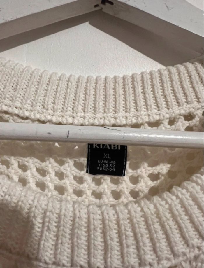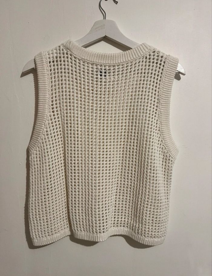 Pull sans manches en maille résille coloris blanc/beige, de la marque Kiabi. Taille XL, en excellent état. 🤍✨