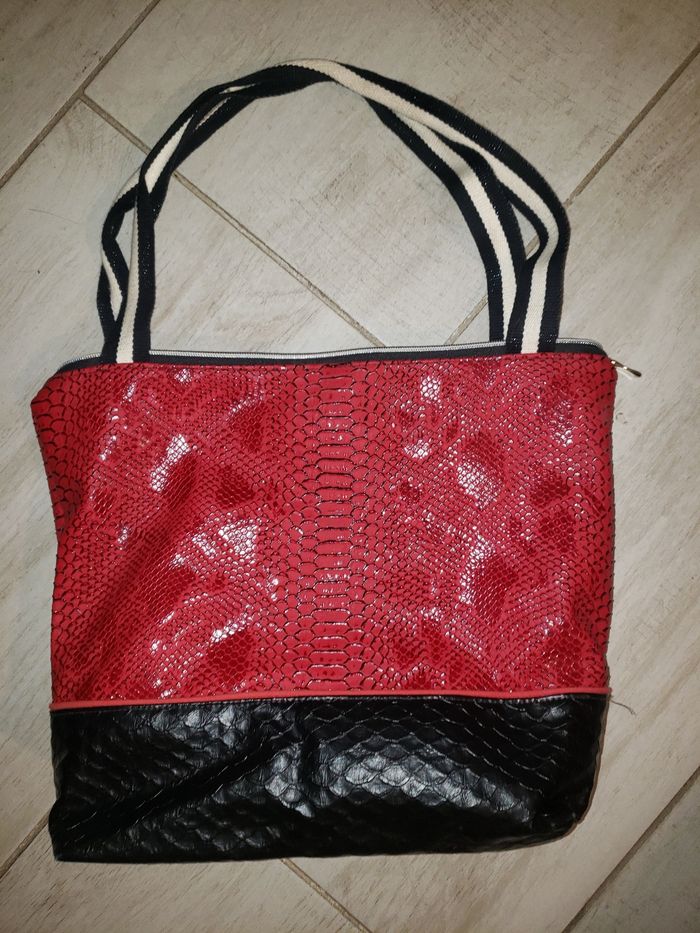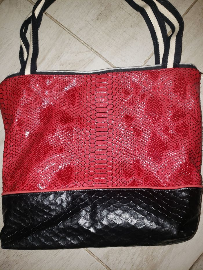 Sac à main rouge et noir Modèle unique "Elles M les sacs" H. 31 L. 35