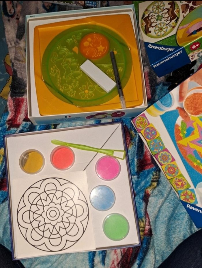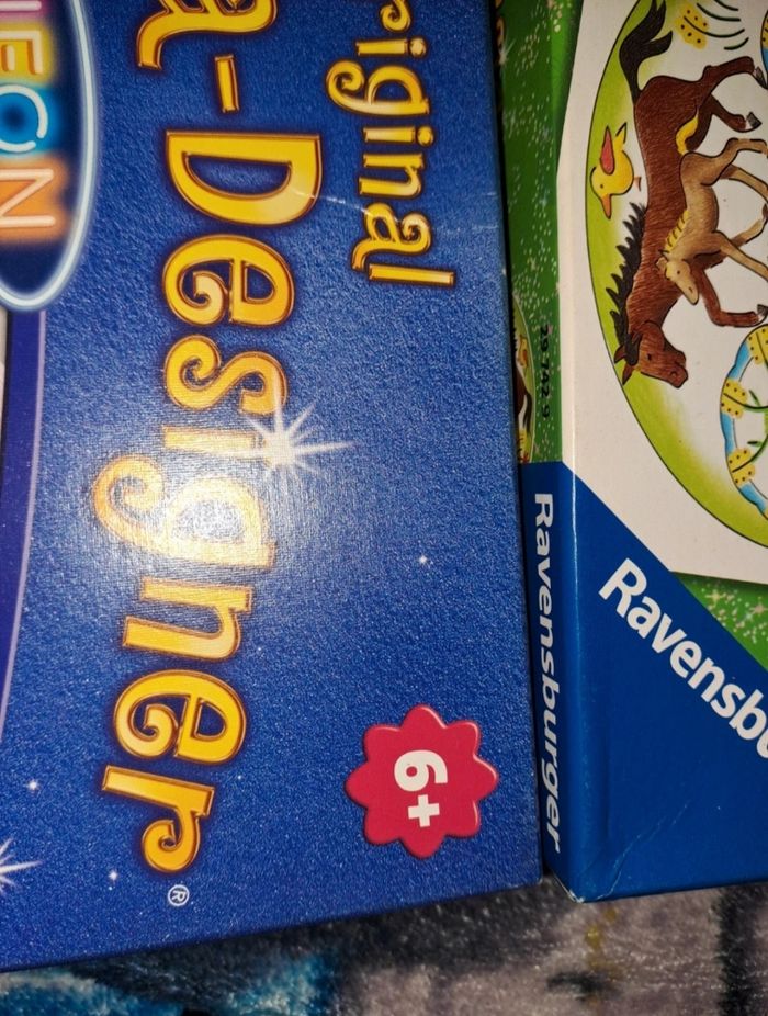 Vend en lot et non séparément Original Mandala-Designer Horses et Neon utilisés qu'une seule fois donc, manque logiquement 1 feuille dans le mandala horses et 1 mandala dans la version Neon. 🙏 PS ": les boîtes sont légèrements abîmés avec le temps ça ne se voit pas très bien sur la première photo et la dernière vous y verrez usure sur la boîte bleue et parcontre j'ai pas mit en photo mais les coins sont très très légèrement abîmés sinon les jeux eux même sont impeccables