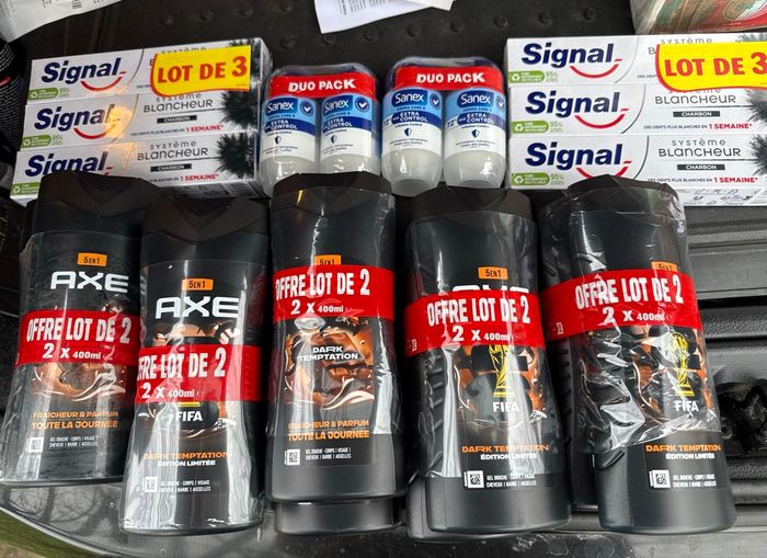 10 AXE + 4 Sandex + 6 signal dentifrice le tout pour 32€