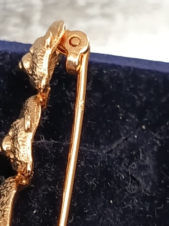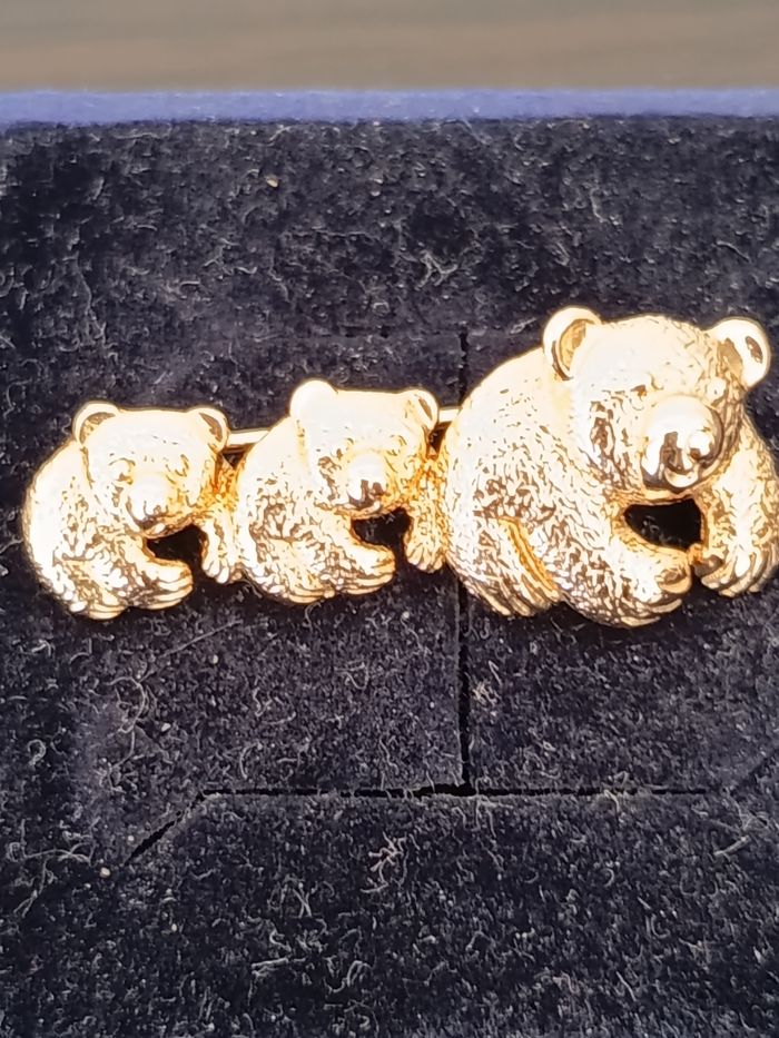 Broche plaqué or trois ours ( maman ours et ses deux petits). Poinçon. Très bonne état.
