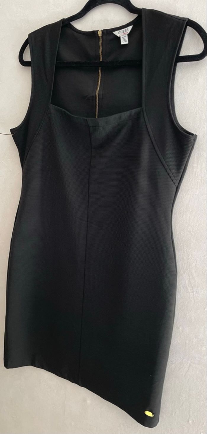 Dimensions Longueur 91 cm Entre aisselles 47 cm entre épaules 36 cm Superbe robe noire GUESS, taille XL, en très bon état Robe coupe ajustée type fourreau qui met la silhouette en valeur. Détails modernes et élégants Empiècements côtelés texturés sur les épaules et les côtés Fermeture éclair dorée au dos Idéale pour une soirée, un événement, une sortie ou une tenue professionnelle élégante