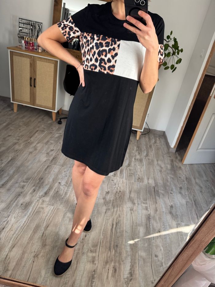 Robe noire imprimé léopard – Coupe droite confortable – Taille 38 🌸 - photo numéro 2
