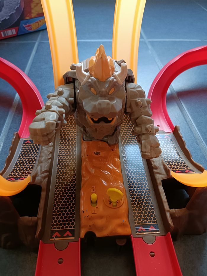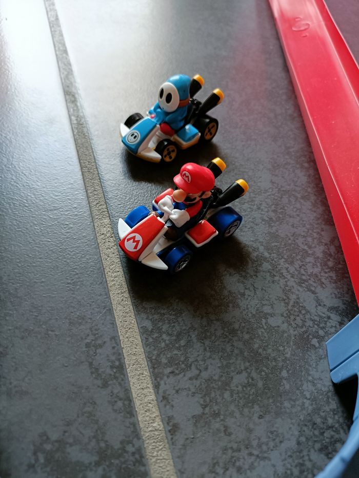 Circuit Mario Kart Hot Wheels - la course chaotique au château de Bowser, avec mini véhicule Yoshi (inclus dans le pack d'origine) + 3 autres mini véhicules (Mario, Luigi et Shi Gui). Super circuit avec deux loopings pour une course côte à côte et Bowser placé à l’endroit stratégique pour essayer d’arrêter les karts en pleine course ! Mécanisme sans pile. Juste besoin de remonter la manivelle pour que les bras de Bowser bougent. Encore en très bon état, juste quelques éclats de peintures sur Bowser et son socle. Avec emballage d'origine, un peu abîmé et notice. Transaction possible par envoi ou remise en main propre sur Saint Bernard ou secteurs Gilly les Cîteaux, Nuits St Georges (ou chu Dijon en semaine et horaires de journée uniquement).