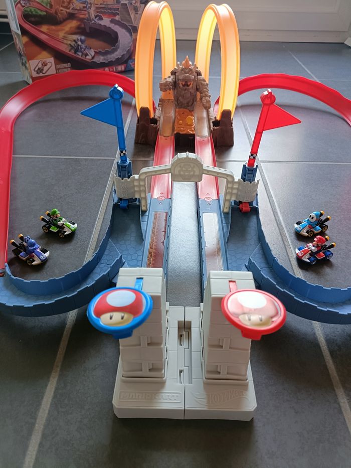 Circuit+4 véhicules Mario kart hotwheels Le château de Bowser  - photo numéro 1