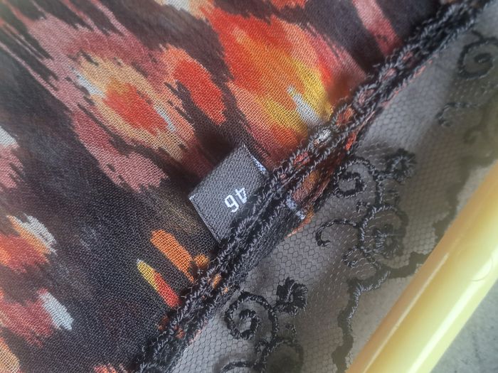 Robe fluide et légère Manches courtes avec nœud Col en V Détail de dentelle sur le tour du col Multicolore Taille 46 Pas d'étiquette de marque