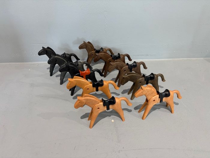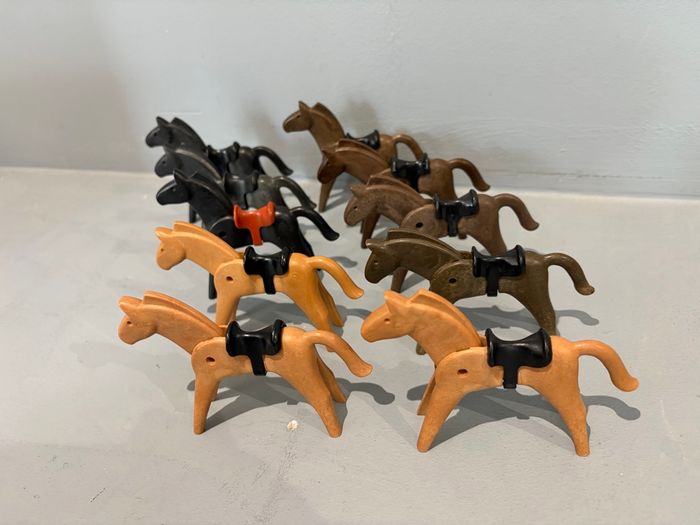 Playmobil Lot de 10 chevaux vintage  Avec selles 3 noirs 4 marrons foncés  3 marrons clairs - photo numéro 1