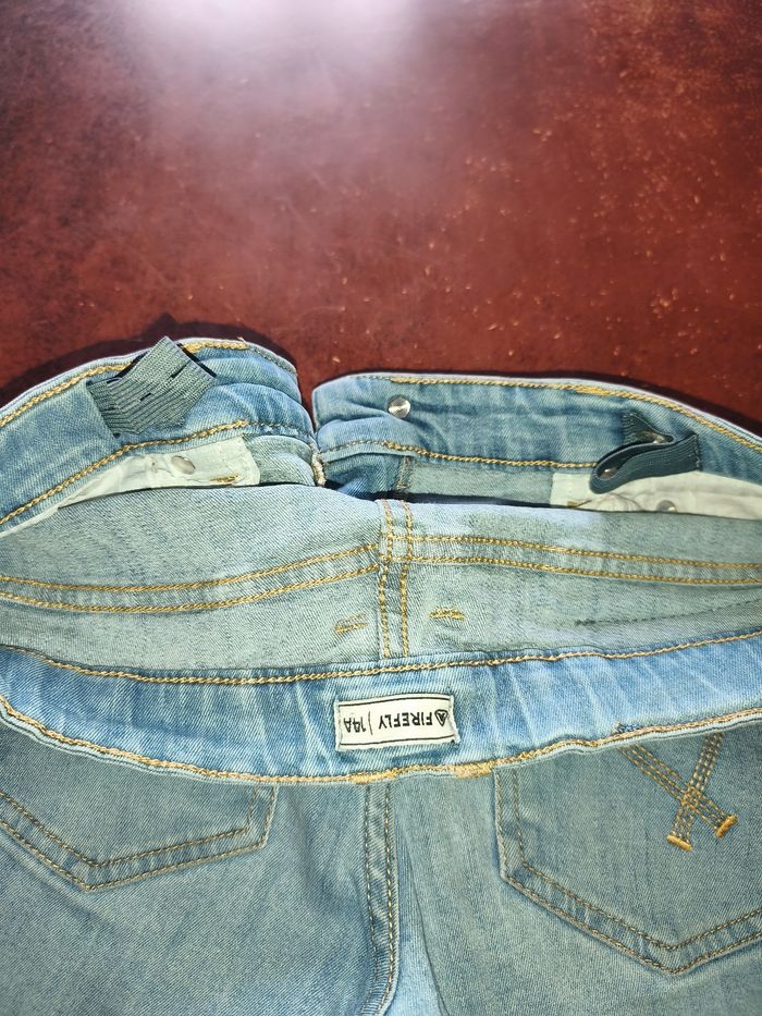 Bonjour je vend ce short jeans garçon réglable a l'intérieur du pantalon en taille 14 ans il est en bonne état et pas déchiré n'y même tâcher très peu porté par mon fils déjà acheté d'occasion.