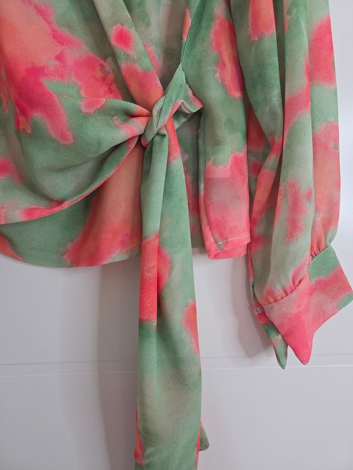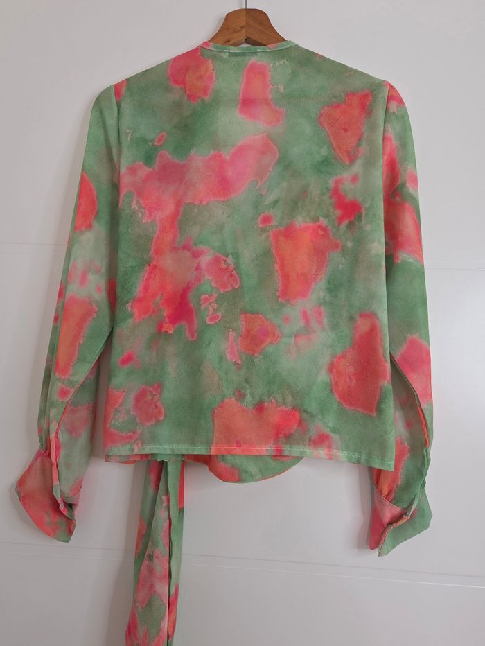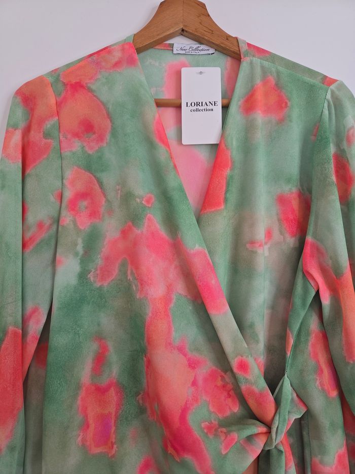 Blouse cache coeur verte et corail taille unique (34-42) fabriquée en italie
